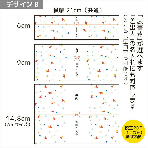 のし紙・掛け紙印刷[デザインB](300枚 A5サイズ) カジュアル・おしゃれに使える当店限定デザインも。横幅210mm。縦幅は3タイプからセレクト。 テンプレートから簡単に選べます。 表書きや差出人の有無・名入れにも対応。